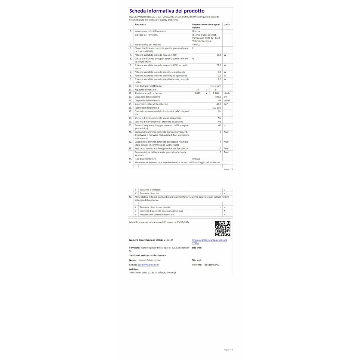 TV intelligente Hisense 43A6Q 43″ 4K Ultra HD LED HDR D-LED – club-remise.com